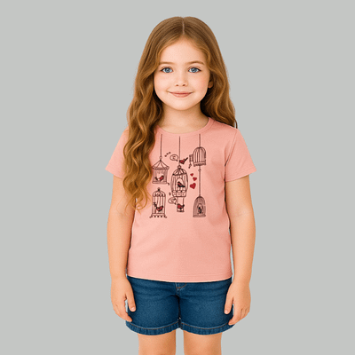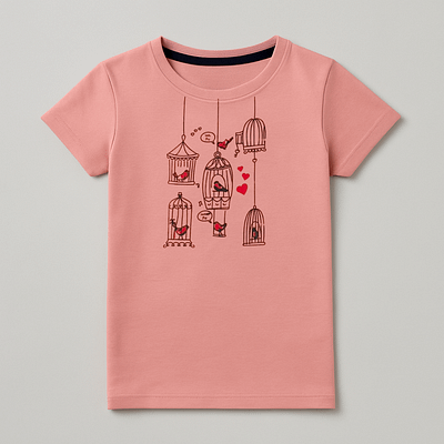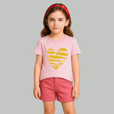 Kids Half Sleeves Pink Lining Printed T-Shirt