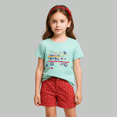 Kids Half Frill Sleeves Green Knot T-Shirt