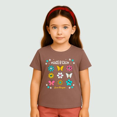 Kids Half Sleeves Brown Peace & Calm T-Shirt