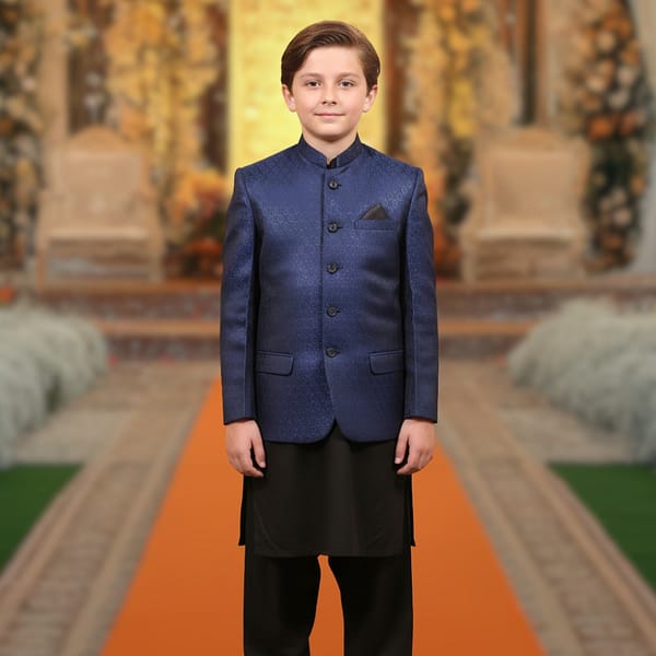 Kids Blue Black Jamawar Prince Coat