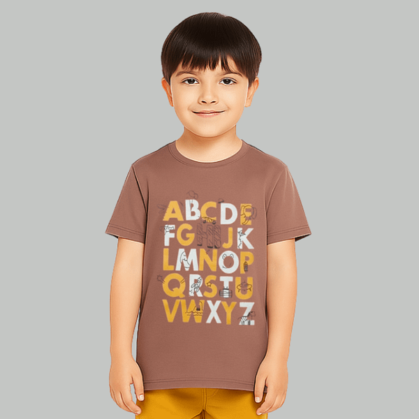 Kids Half Sleeves Brown ABC T-Shirt
