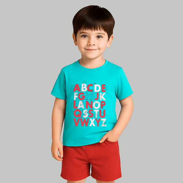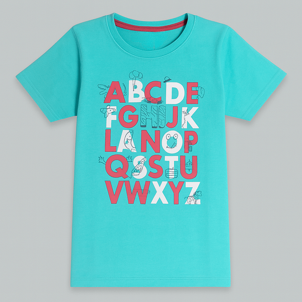 Be the first to review “Kids Half Sleeves Cyan ABC T-Shirt” Cancel reply